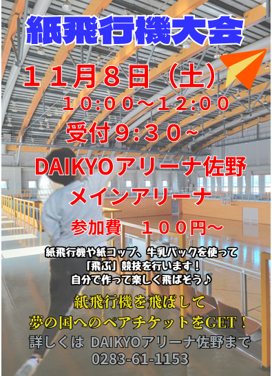 昨年大好評だった紙飛行機大会を今年も開催します。
