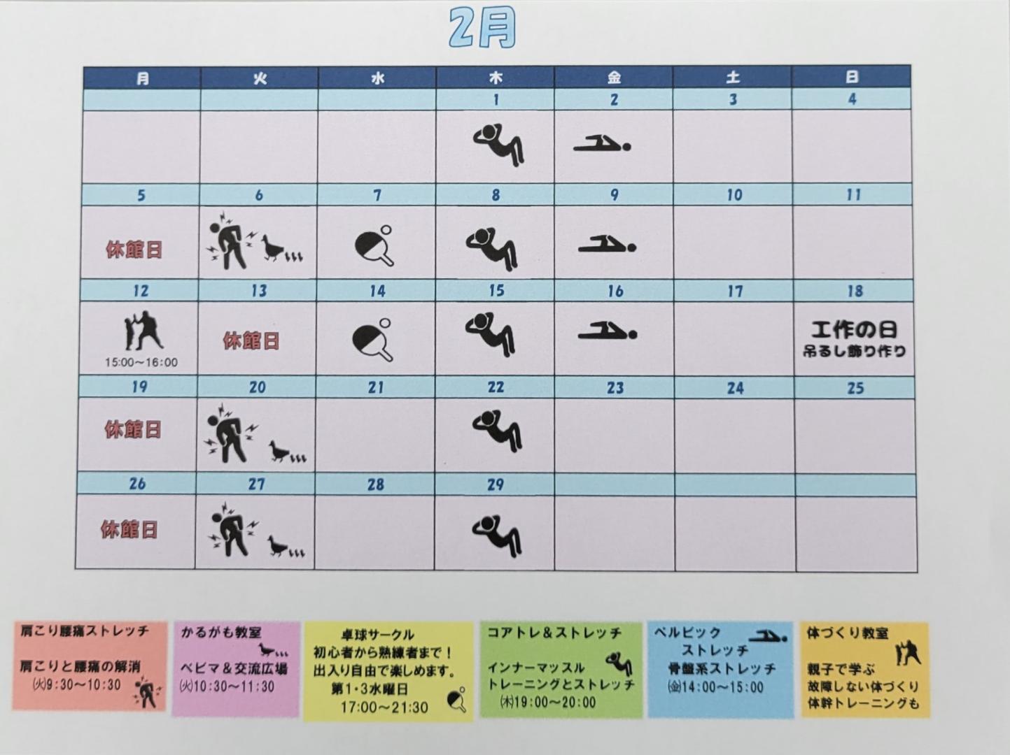 2月は通常の講座スケジュールとなっております。
