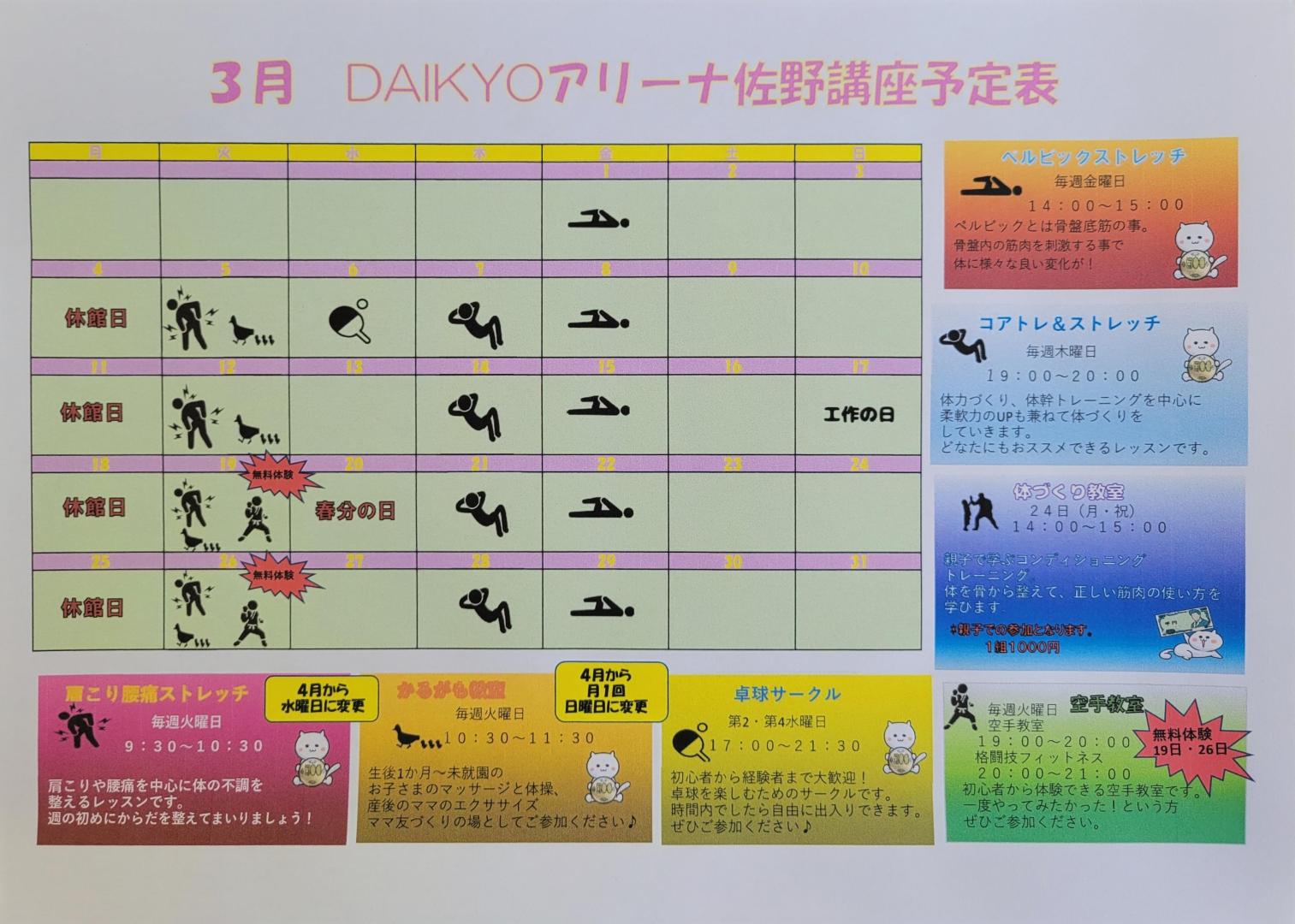 3月はお試し無料体験講座がございます。