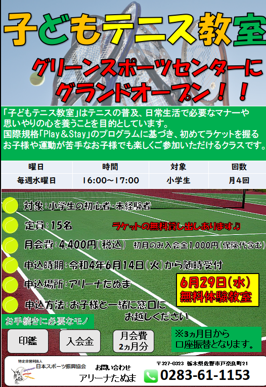 子どもテニス教室開催